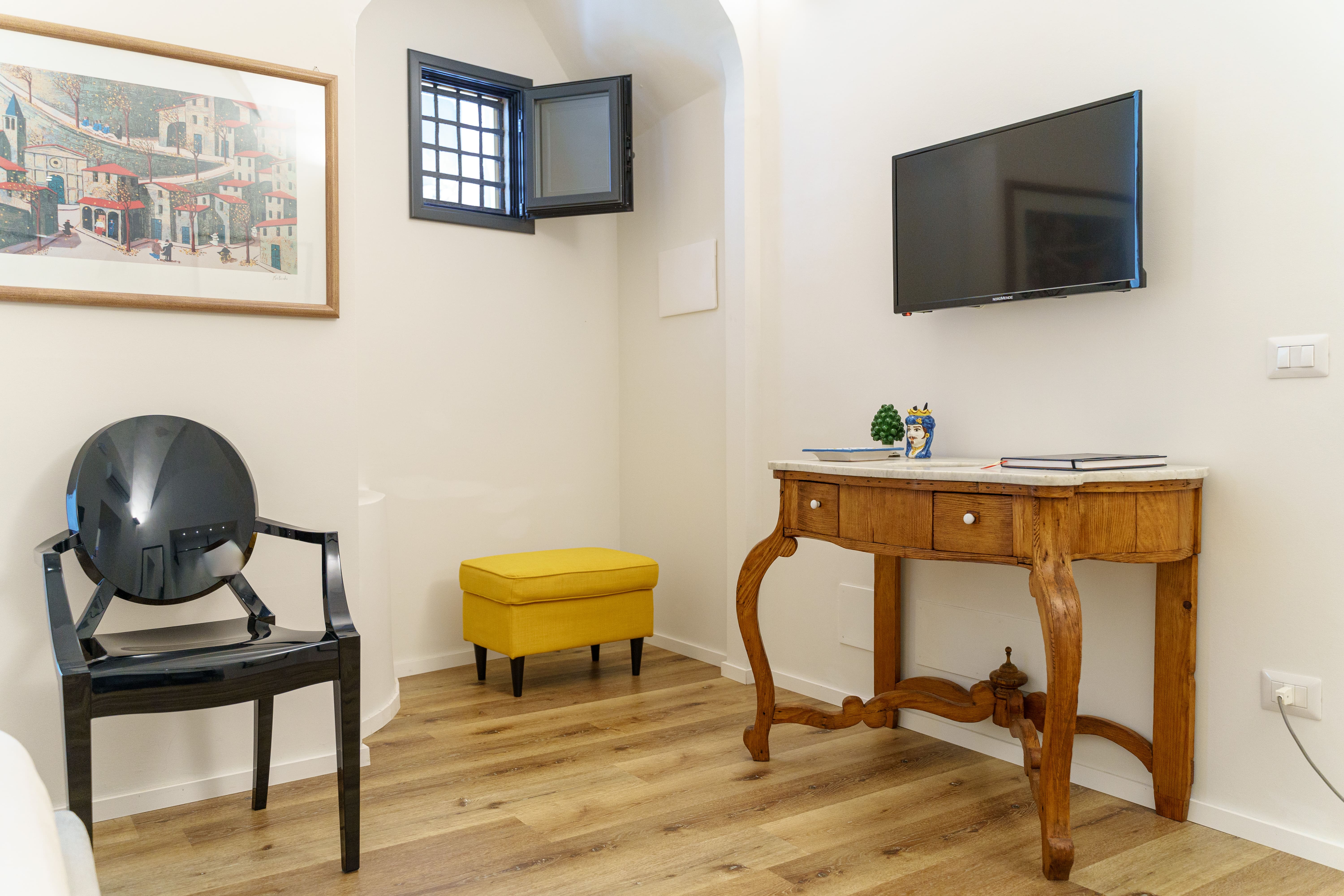 È arredata con comodo letto matrimoniale, armadio a giorno, TV LCD, aria condizionata e Wi-Fi gratuito, garantendo comfort e praticità durante tutto il soggiorno anche per chi necessita di lavorare o navigare online.