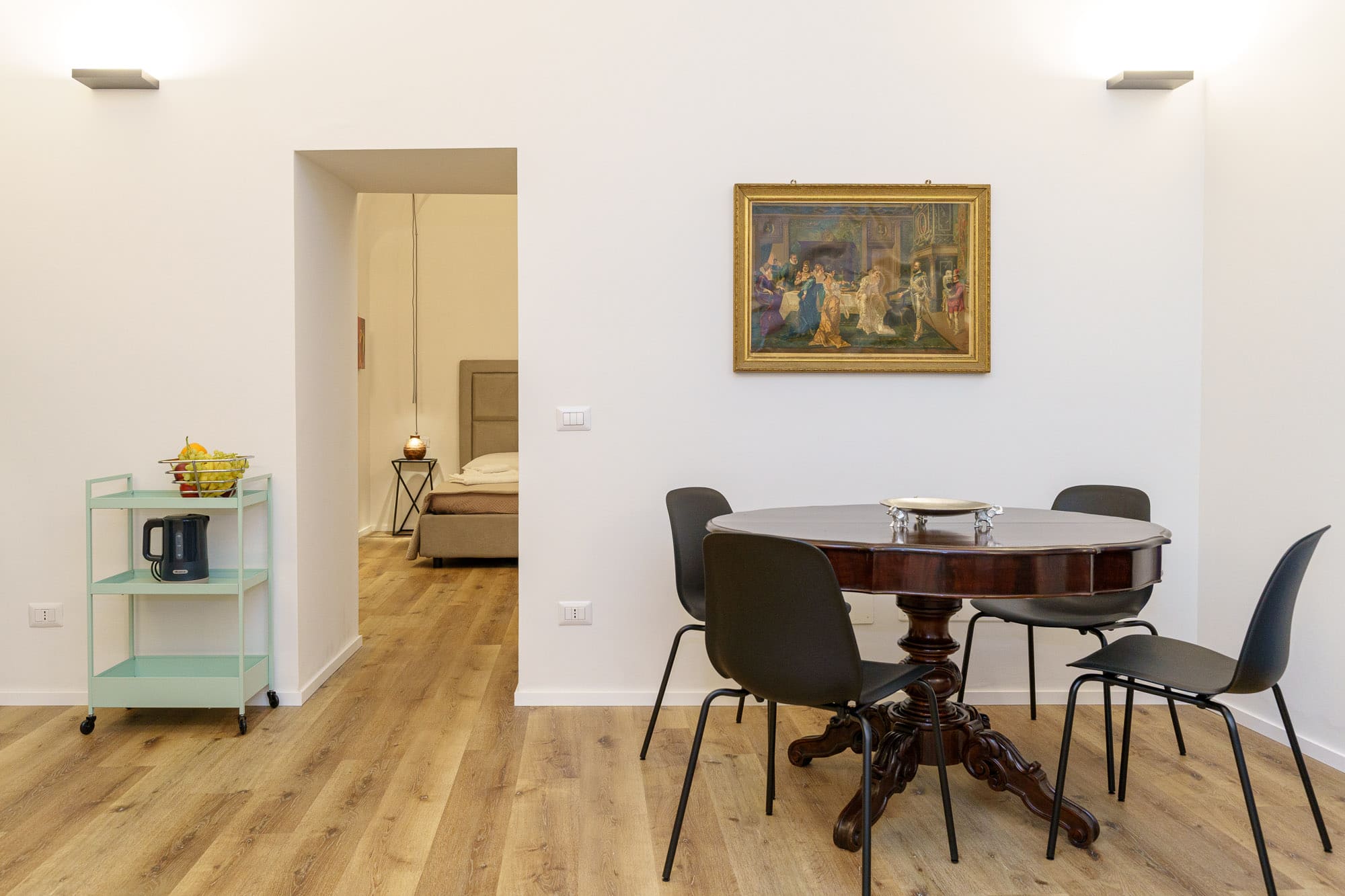 Ottimo appartamento con bella camera da letto spaziosa, bellissimo salottino con divano e tavolo da pranzo e una bella cucina con tanti accessori da cucina. Se volete cucinare Poi tutto a portata di mano. È elegante e arredato con gusto. I padroni di casa Marco e Fausto sono fantastici. Ci hanno aspettato all'arrivo e sono stati molto disponibili e davvero interessati a farci sentire a nostro agio il più possibile. A pochi passi da tutte le principali attrazioni della città.